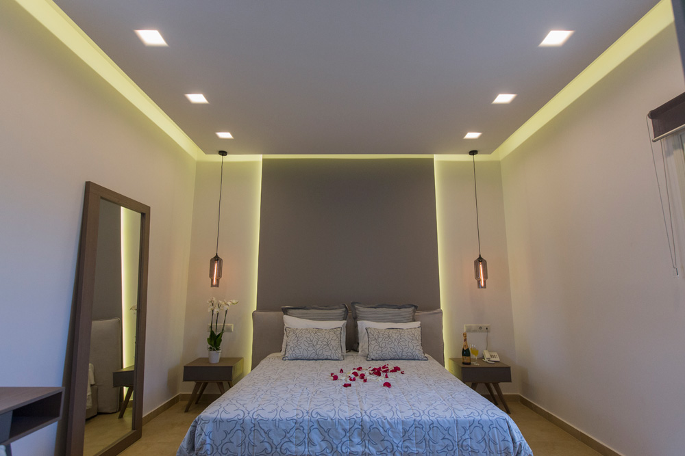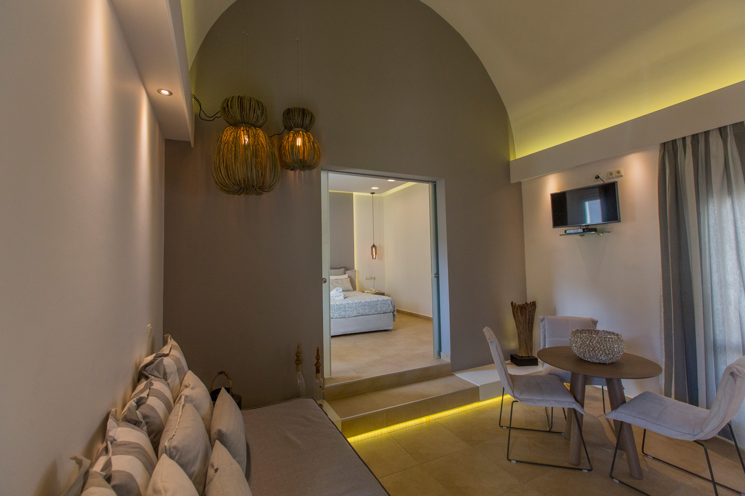 One bedroom with queen bed and a separate sitting area private bathroom and also two balconies,